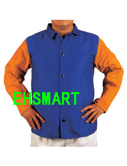 雄蜂王Yellowjacket 防火阻燃棉布背的上身焊服是专为保护身体前上半身又能提供背部凉快舒适而设计, 最适合烧焊或铸造行业操作人员在工作中背部不会受到高度火或热的伤害。此产品是配置内置衣袋,可调及可翻直衣领,杜邦Kevlar防火线,电热绝缘钮扣及锅钉, 以及可调袖口等。